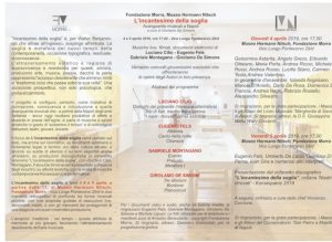 L’incantesimo della soglia si terrà il 4 e 5 aprile, a partire dalle 17, al Museo Hermann Nitsch, Fondazione Morra – Vico Lungo Pontecorvo 29/d in due momenti retrospettivi di confronto tra forme musicali plurime, con una proposta guidata di esecuzioni live, documenti inediti, e con gli interventi dei protagonisti di una stagione unica per creatività e produzione.