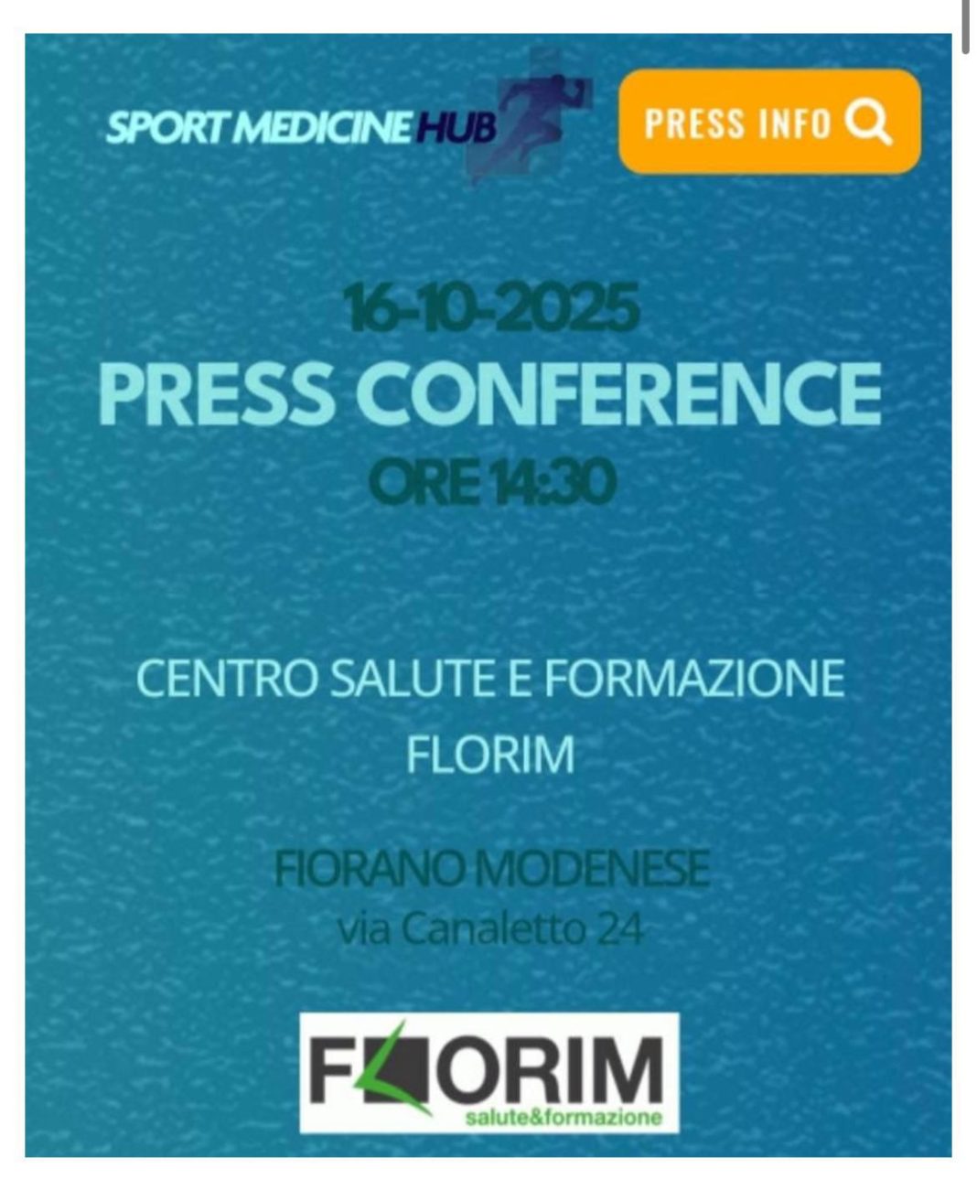 Un nuovo ponte tra medicina, sport e tecnologia prende forma a Fiorano Modenese. Domani, mercoledì 16 ottobre alle 14.30, presso la sede di Florim S.p.A. (Via Canaletto 24), sarà presentato ufficialmente Sport Medicine Hub, la prima piattaforma digitale dedicata alla raccolta, validazione e valorizzazione dei dati clinici nello sport.